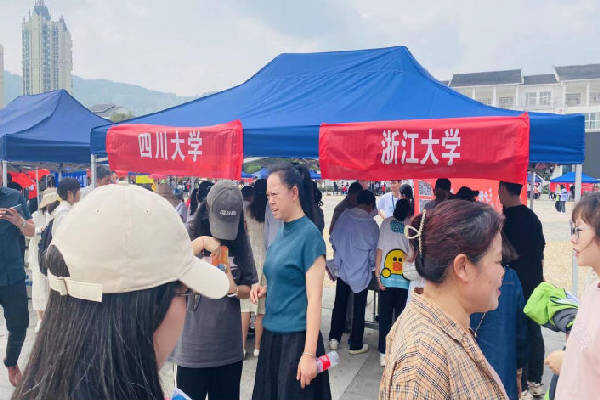 宣讲会结束,高校招生宣传咨询活动随即在凯里一中铜鼓广场如火如荼地开展起来。来自全国各地的50所高校齐聚一堂,各高校设立了咨询台,通过现场招生解答、发放招生宣传资料等方式,向考生和家长展示了各自的办学特色、专业设置以及就业情况等信息。各高校招生老师亲自为考生和家长答疑解惑,提供个性化的报考建议,旨在帮助考生们更好地了解高考志愿填报,为自己的未来规划打下坚实基础。