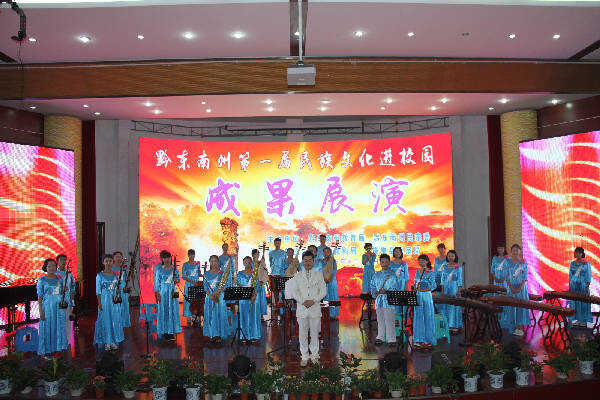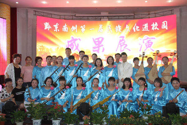 2015年6月我校民乐团参加黔东南州第一届民族文化进校园成果展演活动荣获一等奖