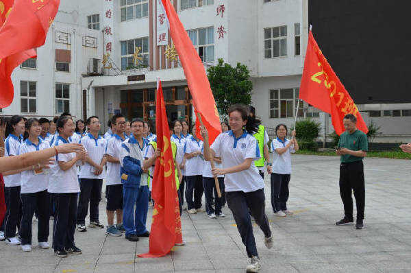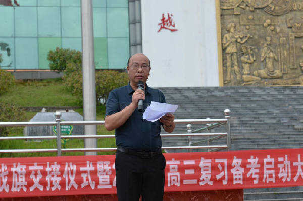 党委书记、校长杨和宝从莫才麟主任手里接过2022届的战旗,并亲手将战旗交给了2023届高三年级主管副校长潘启祥的手里。潘启祥副校长将战旗交给了年级部主任杨启梅老师,杨启梅主任再将战旗交给了班主任,班主任接过战旗并将其交给了班长。战旗在30个班的班主任和班长手中传递。整个会场的气氛紧张而热烈。