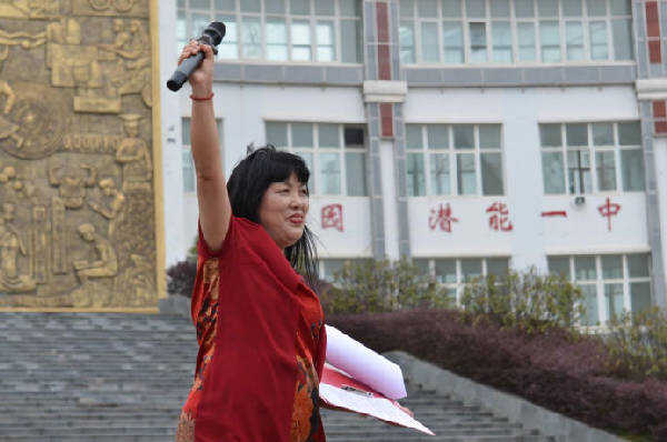 2023届教师代表龙贝娜老师也上台表达心声。她说,接过高考战旗,在我们手中的日子还剩345天。龙老师深情地说,凯里一中是造梦且能圆梦的地方,风已经来了,请准备好飞翔的姿态,在一中校园留下你奋斗的身影和传奇的佳话。