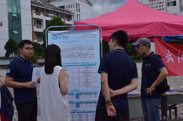 上午八点半,来自省内外近50所高校在铜鼓广场为我校应届考生及家长进行免费志愿填报咨询指导。咨询的问题主要是,招生计划情况,预估投档分和录取位次,怎么借鉴往年数据进行参考,各专业就业方向以及保研比例、考研率等。天气虽然有些炎热,但并不影响咨询现场的热烈与火爆。本次咨询会还获得了高校老师的赞誉,对学校的组织与服务给予了高度的评价。