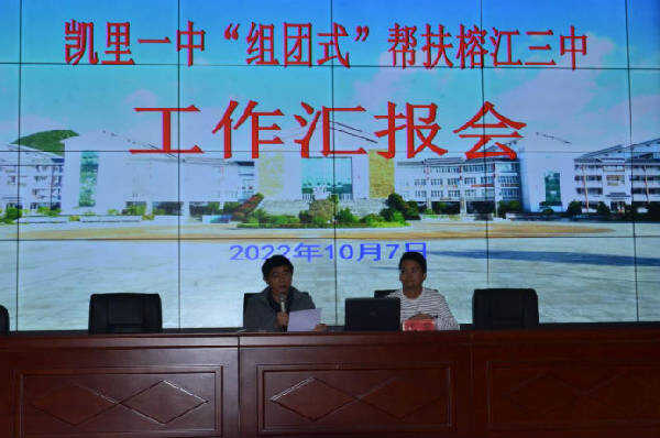 会上,政教处沈常副主任作为今年凯里一中“组团式”帮扶榕江三中的教师代表向学校管理层做了一个半月来的支教工作情况汇报。对于榕江三中建校时间、教师队伍、学生人数、生源情况、高考成绩等,凯里一中支教队伍工作的开展情况、工作量以及责任与使命,沈常副主任如数家珍,娓娓道来。最后,他用“有一种生活,没有经历过,就不知道其中的艰辛;有一种艰辛,只有体会后,才明白什么是幸福”这几句话概括支教生活,与会人员深受感染,倍感振奋。