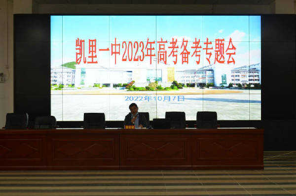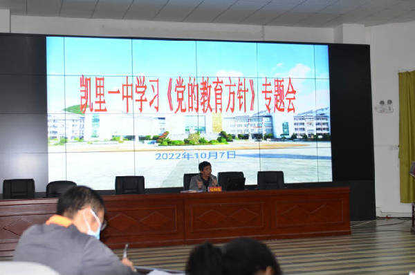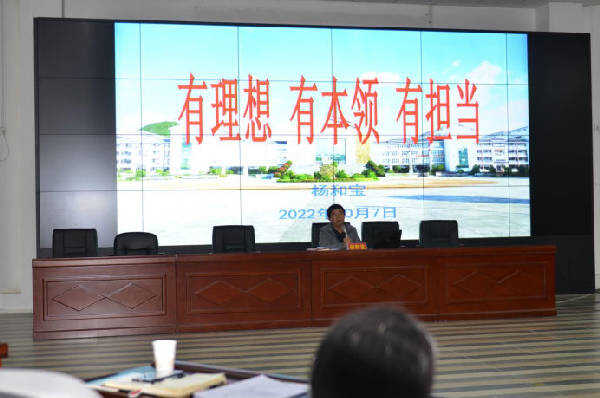2022年10月7日上午十点,党委书记、校长杨和宝在科技楼主持召开凯里一中2022年管理队伍培训会议,中层以上干部五十余人参加会议。